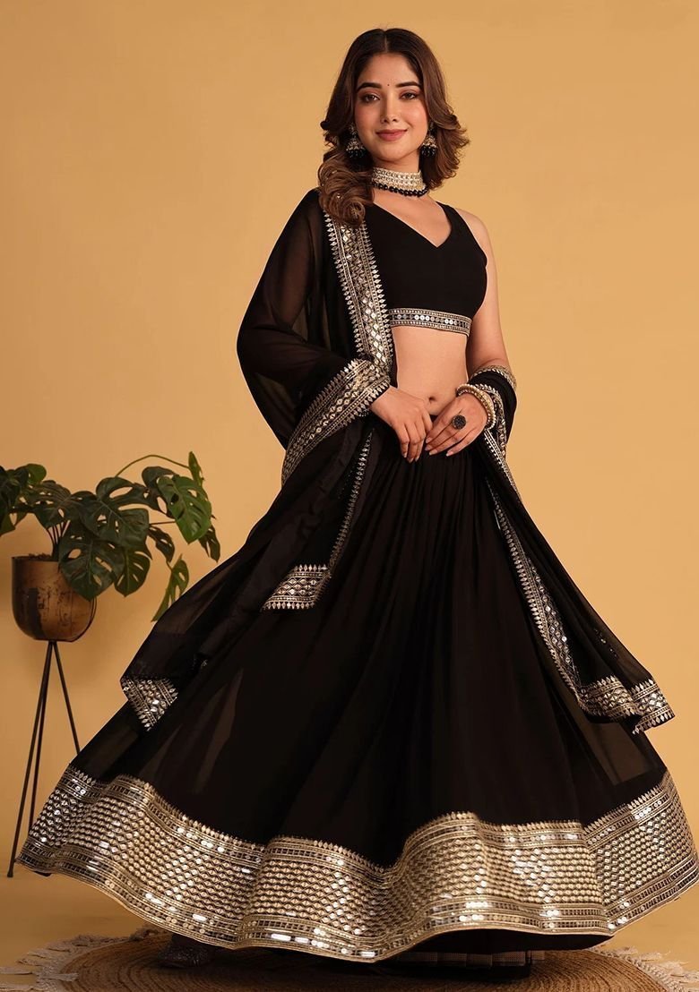 Black Sequin Embroidered Faux Blooming Lehenga Set