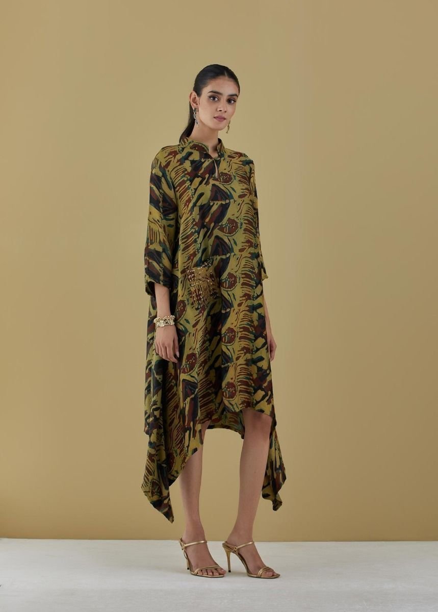 Dry Heena Green Tunic With Embroidered Pocket