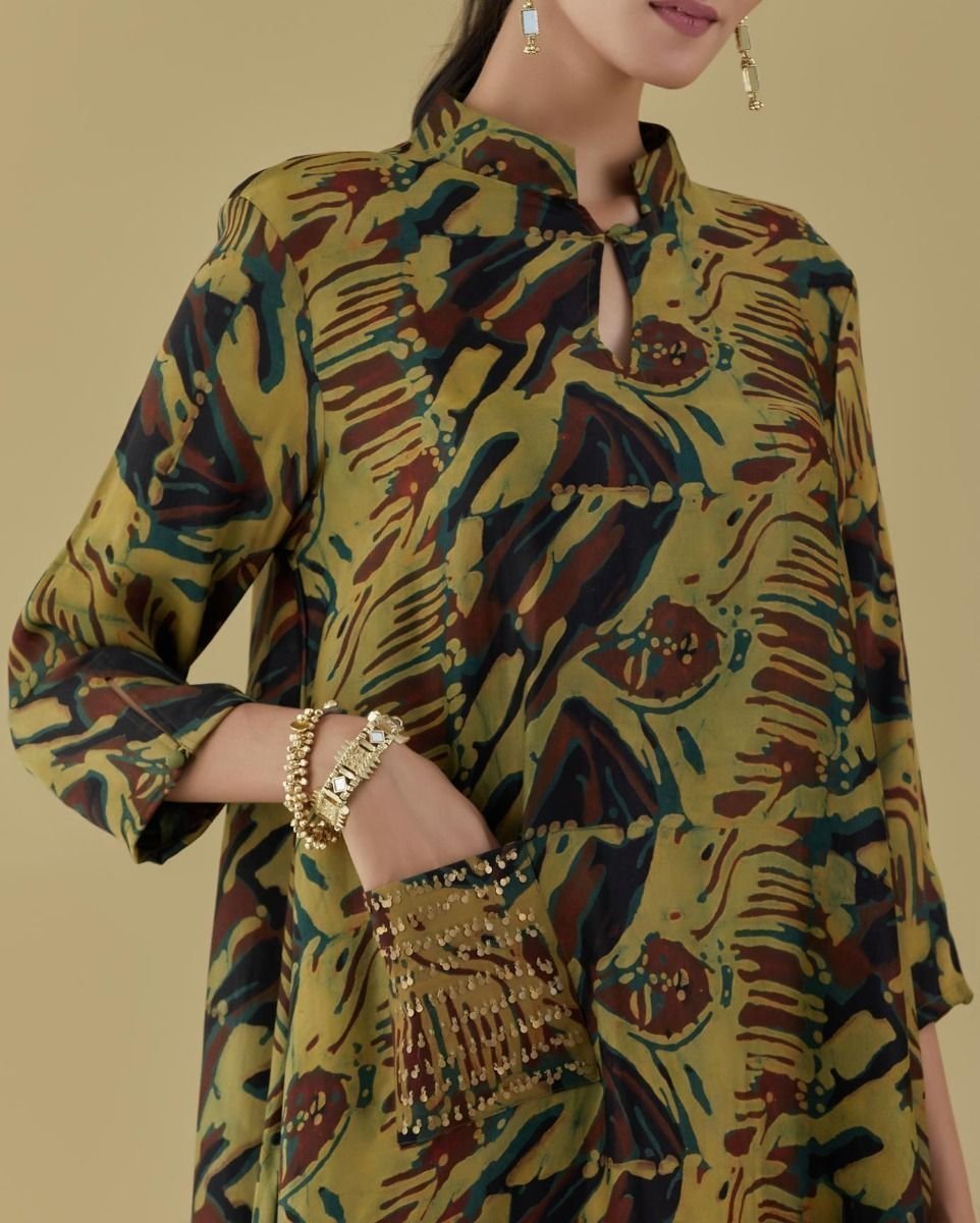 • Heena green tunic with coin embroidered pocket