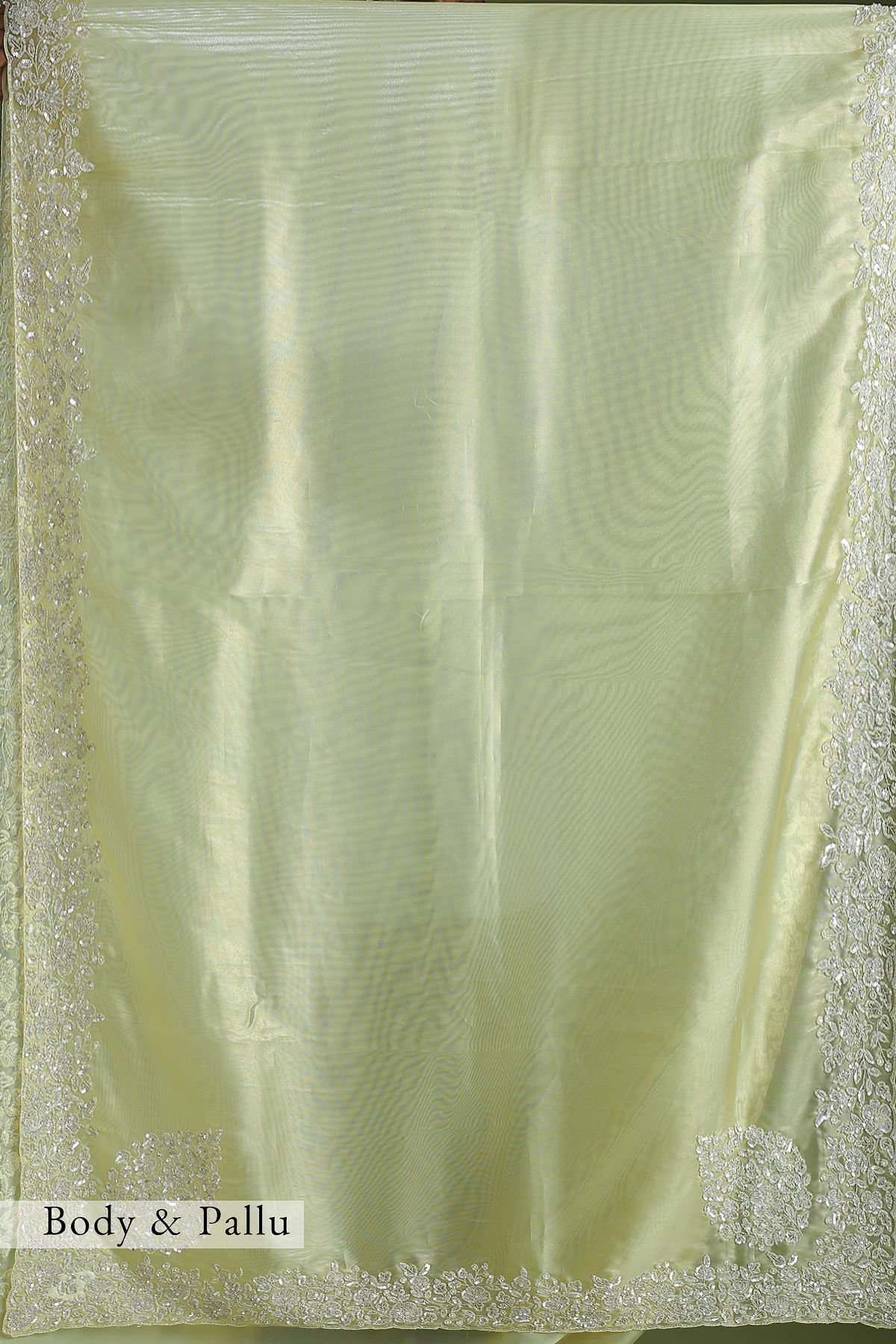 Craft : Embroidered Pattern : All over Purity : Pure Saree Color : Golden Mist Yellow Saree Fabric : Tissue Saree length : 5.5 Mtrs Saree Work : Plain - Border/Pallu