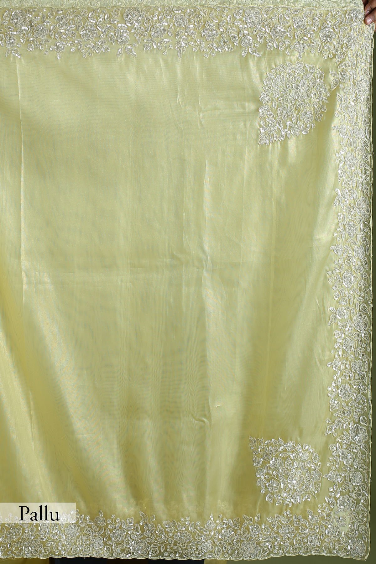 Golden Mist Yellow Sequins Embroidered Tissue Saree