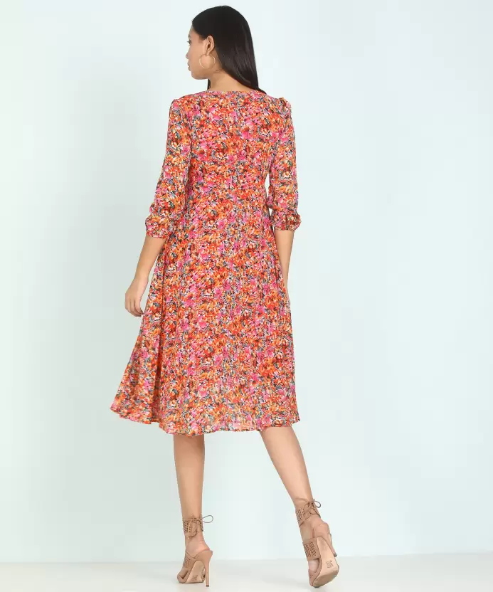Women Fit and Flare Multicolor Dress