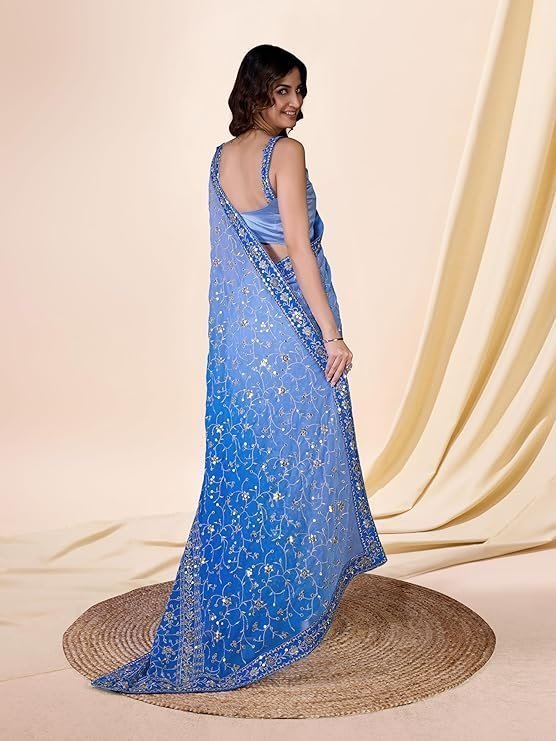 Women’s Georgette Sequin Embroidery work Saree with Unstitch Blouse Piece