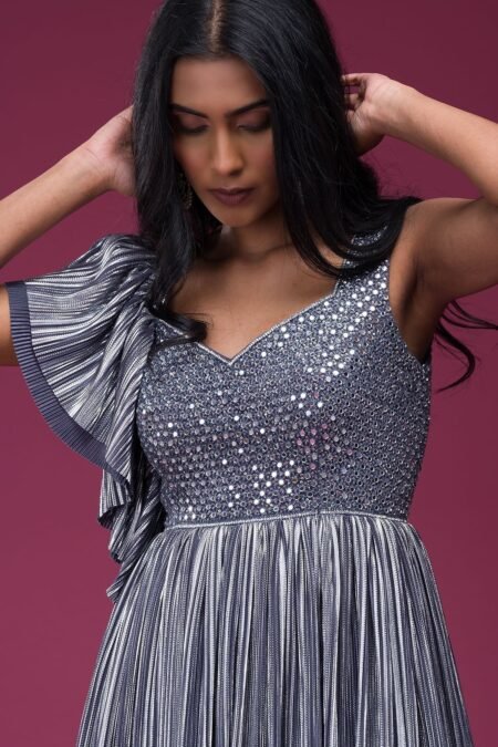 ₹28,900.00 – ₹29,200.00Price range: ₹28,900.00 through ₹29,200.00Gown Back Neck : Pentagon Neck Gown Color : Grey Gown Fabric : Silk Gown Front Neck : Pentagon Neck Gown Length : Floor Length Gown Sleeves : Asymmetric Sleeves Gown Style : Gathered Gown Work : Mirror & Sequins Work Select options This product has multiple variants. The options may be chosen on the product page -